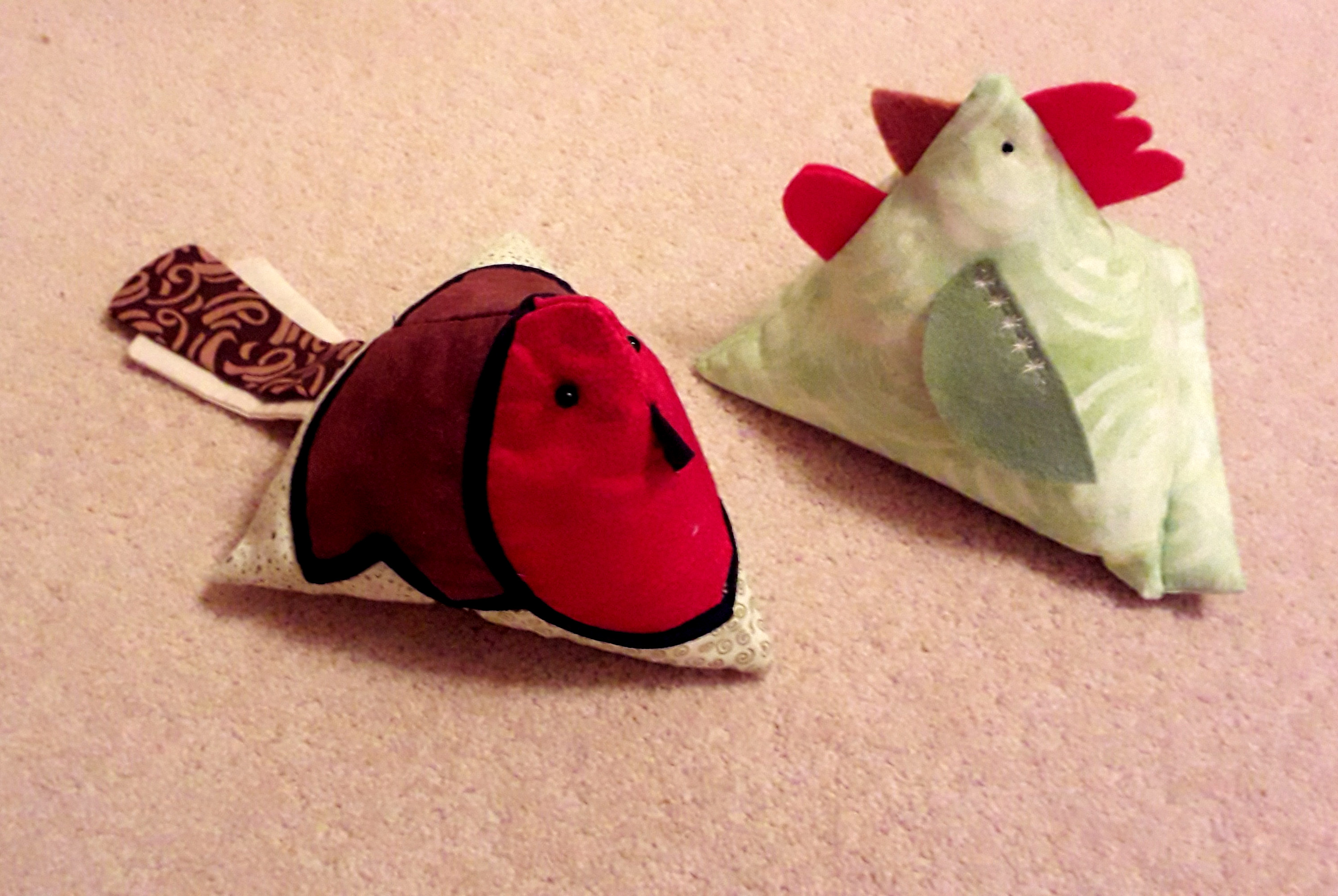 Val W was next with her Cheeky Robin. Seemingly easy to make from three squares of felt and help from grandchildren, this robin could be made more elaborate by adding legs before stuffing or even a flap/tail to make it a mobile phone/tablet stand. Again a different colour and a comb and we had an Easter chick. Thank -you Val.