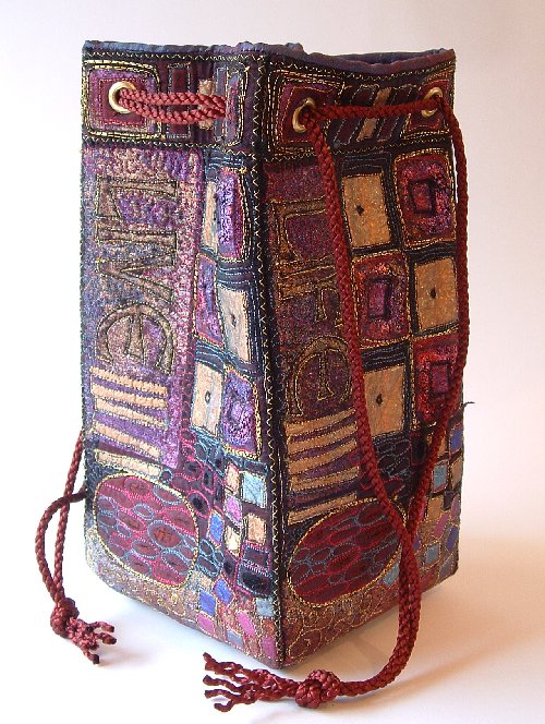 Jacky is a regular visitor to our sales table, keeping her stash topped up, and even the most unpromising fabrics clearly gain a new lease of life in Jacky’s skilled hands. We enjoyed a Klimt inspired wall hanging of Burton Bushes in Beverley, with spindly, stylised trunks and stylised flower patterns in gorgeous hues.