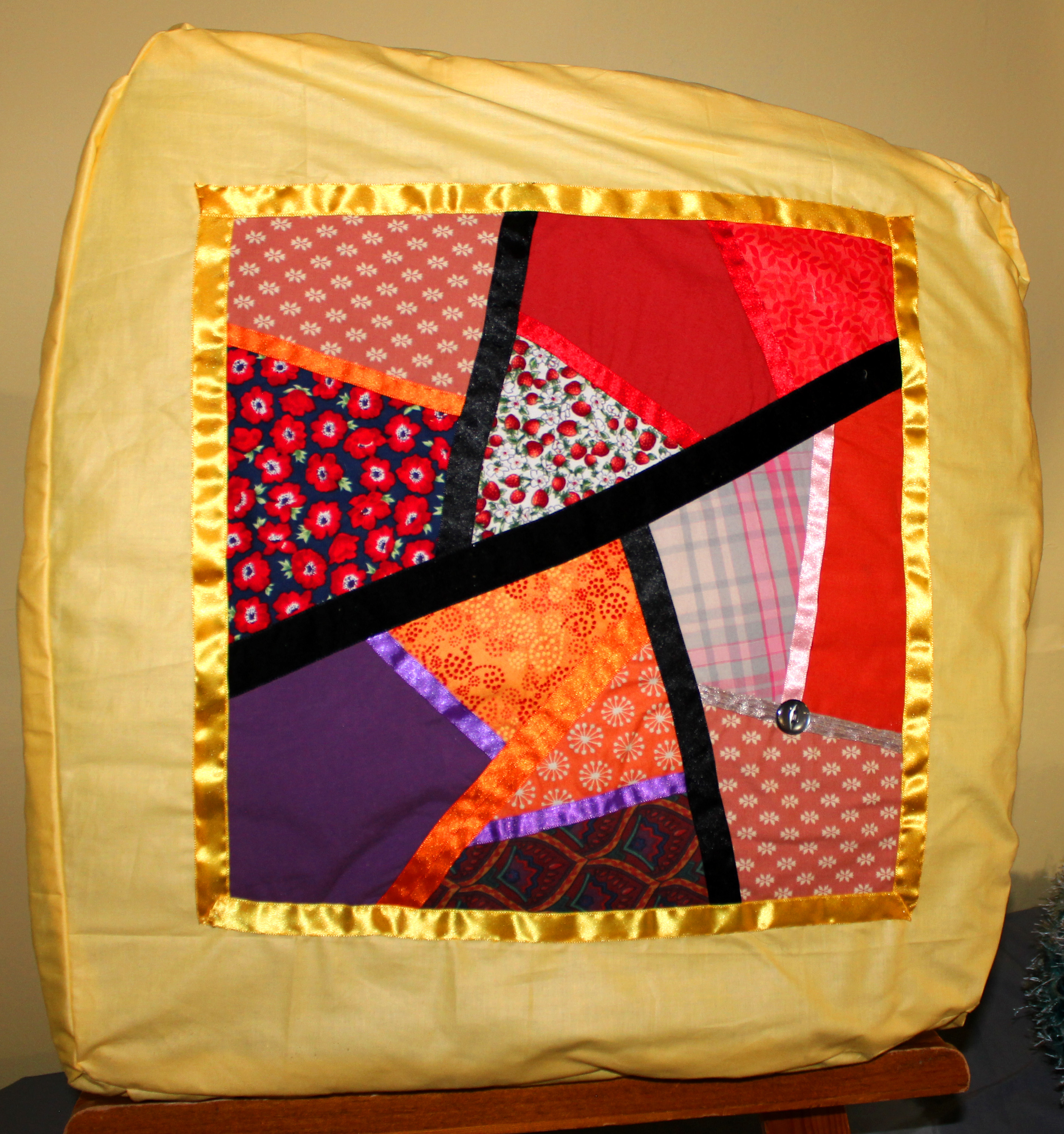 IMG_8745_edited-1 May 13, 2018Full resolution (2816 × 3000) ← Previous Next → Dabble day crazy patchwork square put to good purpose as a cusin cover.